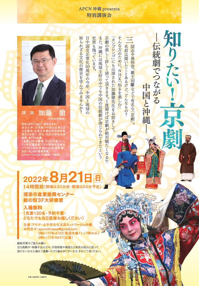 > 【沖縄】特別講演会 知りたい!京劇 -伝統劇でつながる中国と沖縄-(2022.08.21)